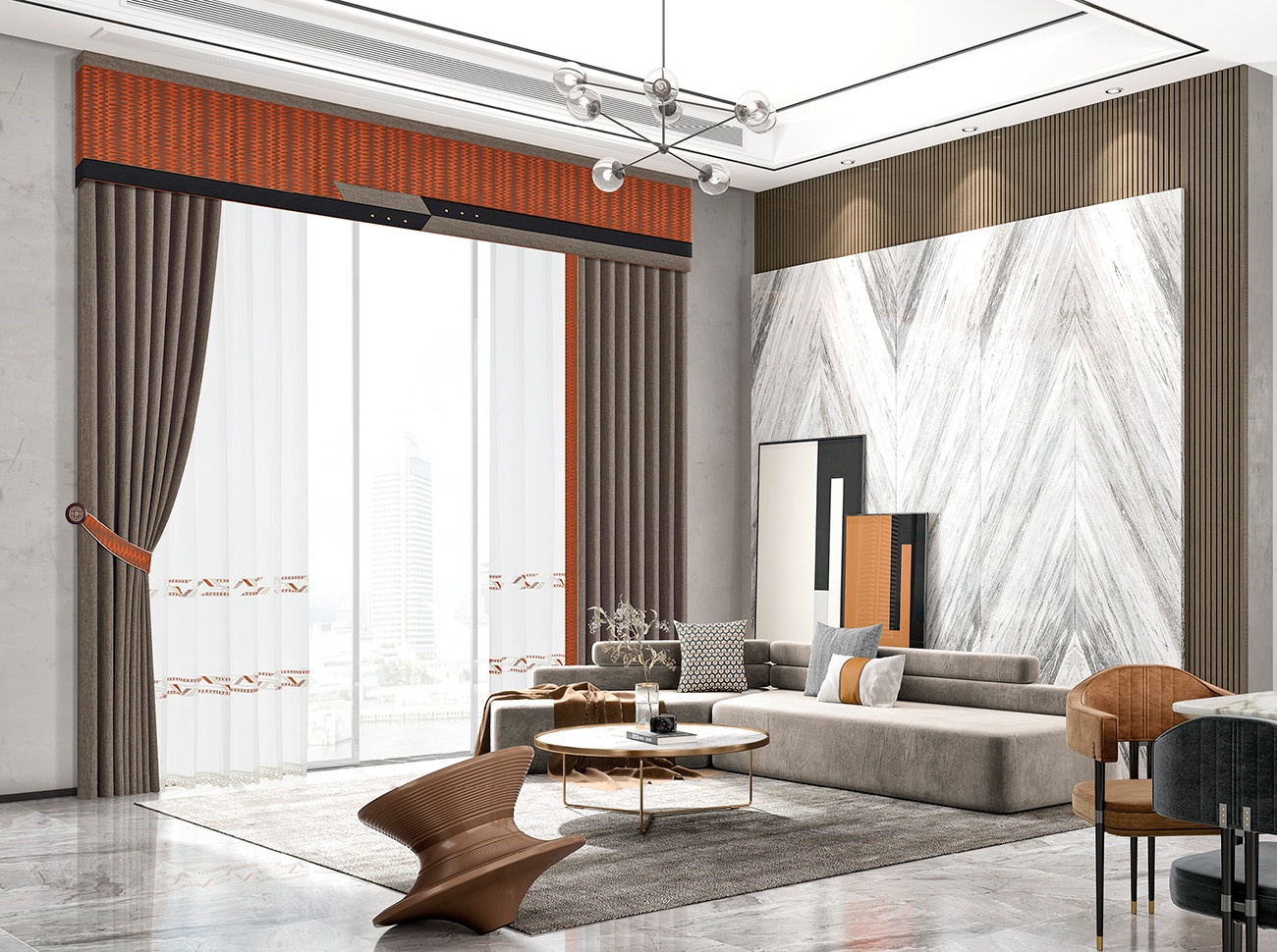 奢雅視感的窗簾,配合簾頭干凈流暢的線條、簡約而不簡單的造型,帶來視覺上的舒適平整,展現(xiàn)出時(shí)尚審美與經(jīng)濟(jì)需求結(jié)合的奢雅設(shè)計(jì)。高級配色濃烈醇厚,如一場華麗的探戈,輕而易舉演繹出時(shí)尚、現(xiàn)代、摩登的生活空間。