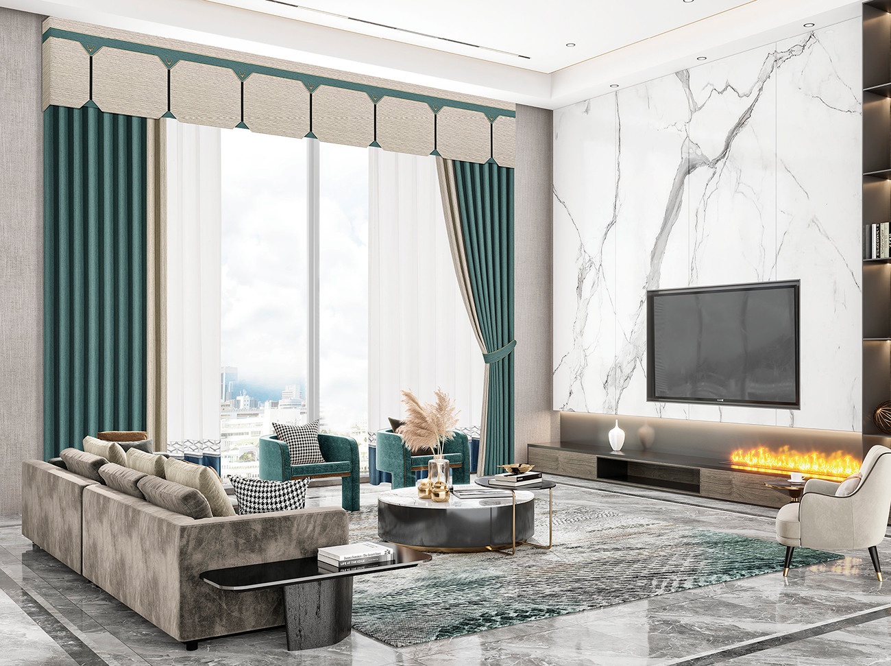 低調(diào)純凈的藍(lán)綠色如同靜待時(shí)光召喚的夢境叢林,與米灰色流暢自然的過渡渲染出時(shí)尚而清新的視覺享受。簡約而優(yōu)美的方形依次排列,強(qiáng)勢而規(guī)律的美感折射著內(nèi)涵豐富的動(dòng)人魅力,精致的金色鹿頭裝飾,讓貴族氣質(zhì)彰顯無疑。